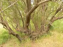 Tamarix nilotica can help stabilise sand and may form nabkhas as part of the dune forming process. Wind blown sand comes to rest at the foot of the shrub and accumulates, gradually creating a hummock; the shrub's extensive root system continues to extract moisture from the underlying saline substrate and grows at a faster rate than the mound rises.[5]