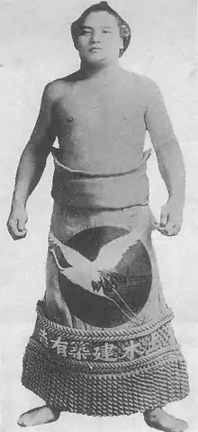 Tamatsubaki Kentarō (玉椿憲太郎, Tamatsubaki Kentarō, 10 November 1883 – 19 September 1928) was a sumo wrestler from Toyama City, Japan. He was known for his techniques, which accommodated his small size. Although his height was only 158 cm, he gave the likes of Hitachiyama and others a real challenge and was called the "mite".[1] He was the shortest wrestler in sumo history,[2] and also one of the lightest at 73 kg. His highest rank was sekiwake. After retirement he was known as Shiratama-oyakata.