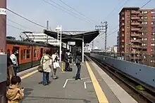 The elevated station has an island platform with two tracks.