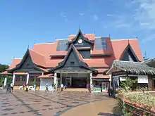 Taming Sari Tower is a 24-story, 110-meter-tall gyro tower in Malacca City, Malacca, Malaysia. It is the first and tallest gyro tower in Malaysia. The tower was opened to the public on 18 April 2008 and officiated by Chief Minister of Malacca, Mohd Ali Rustam on 17 May 2008. Its' design was taken from the eponymous legendary keris which belonged to Hang Tuah. The tower offers a 360-degree panoramic view of Malacca City and beyond, and is able to accommodate 80 people per viewing session, which lasts about 7 minutes.[3]