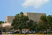 The University of South Florida was established in North Tampa in 1956 and opened for students in September 1960.[55] The school spurred the construction of several residential and commercial developments in the previously agriculture-dominated area around the new campus. Overall, Tampa continued to expand away from the city center during the 1960s as new hospitals, schools, churches and subdivisions all began appearing to accommodate the growth. Many business offices began moving away from the traditional downtown office building into more convenient neighborhood office plazas.[54]