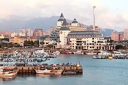 The Tamsui Fisherman's Wharf (Chinese: 淡水漁人碼頭; pinyin: Dànshuǐ Yúrén Mǎtóu), officially the Tamsui Second Fishing Harbor (Chinese: 淡水第二漁港; pinyin: Dànshuǐ Dìèr Yúgǎng), is a major fishing harbor and a scenic spot on the right bank of the Tamsui River estuary, at the western tip of Tamsui District, New Taipei City, Taiwan. The predecessor was the Tamsui Customs Wharf, a more inland but important fishing harbor in the early history of north Taiwan.