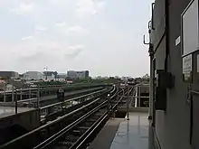 Raised above the middle of New Upper Changi Road is Tanah Merah MRT station, a railway station which also operates as an interchange for passengers who wish to travel by train to Singapore Expo, Changi Business Park and Singapore Changi Airport. Its neighbouring stations are Expo MRT station, Bedok MRT station and Simei MRT station.