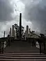 The French military invaded Antananarivo in September 1894, prompting the queen's surrender after a cannon shell blasted a hole through a building at the Rova, causing major casualties. The damage was never repaired. Andohalo square was remodeled to feature a gazebo, walkways, and planted landscaping. Claiming the island as a colony, the French administration retained Antananarivo as its capital and transcribed its name as Tananarive.[30] They chose Antaninarenina as the site for the French Governor General's Residency; upon independence, it was renamed Ambohitsorohitra Palace and converted into presidential offices. Under the French, tunnels were constructed through two of the city's largest hills, connecting disparate districts and facilitating the town's expansion. Streets were laid with cobblestones and later paved; sewer systems and electricity infrastructure was introduced. Water, previously obtained from springs at the foot of the hill, was brought from the Ikopa River.[31]