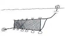 The tangle net originated in British Columbia, Canada, as a gear specifically developed for selective fisheries.[1] Tangle nets have smaller mesh sizes than standard gillnets. They are designed to catch fish by their nose or jaw, enabling bycatch to be resuscitated and released unharmed.[2][3] These nets are made with a very thin light nylon rope, have a small mesh and are strung between two ropes, a top rope with floats, and a bottom rope with weights. Dropped to the bottom of the ocean, located and retrieved through the use of a guide line and buoy, these nets have allowed both fishermen and scientists to reach areas not previously accessible. Tangle nets are generally left on the bottom for no more than a day or two so that the fish and bycatch does not die and spoil.