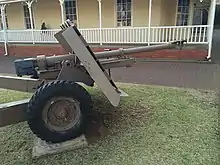 The first German tank, the A7V, used British-made 57 mm Maxim-Nordenfelt fortification guns captured from Belgium and Russia, mounted singly at the front.