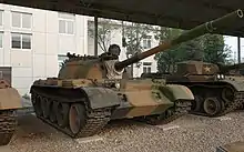 One Soviet T-62 tank was disabled and captured by the People's Liberation Army during the 1969 Battle of Zhenbao Island. The T-62 (No. 545) was hit by a rocket-propelled grenade fired from the Type-56 (Chinese copy of RPG-2) RPG launcher on the morning of 15 March 1969 during a PLA counterattack. On 16 March 1969, the Soviets entered the island to collect their dead. The Chinese held their fire. On 17 March 1969, the Soviets tried to recover the disabled T-62 from the island, but their effort was repelled by Chinese artillery.[33] On 21 March, the Soviets sent a demolition team attempting to destroy the tank. The Chinese opened fire and thwarted the Soviets.[33] The tank was later sunk in the frozen Ussuri (Wusuli) River to avoid being captured and studied by the Chinese Army. On April, with the help of divers of the Chinese navy, the PLA pulled the T-62 tank onshore. The tank was later given to the Chinese Military Museum. This tank was later studied, and the information gathered from those studies was used for the development of the Type 69 main battle tank.[34]
