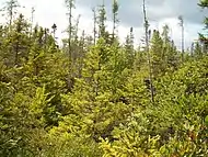 ![]() Black spruce and tamarack growing near the bog's center | |