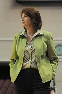 She stayed with the Pioneers for one year before earning her first NCAA Division I head coaching position with the University of San Francisco in 2006.[13] During her four-year stay with the San Francisco Dons women's basketball team, Haave accumulated a 36-86 overall record and four straight seventh-place finishes in the West Coast Conference.[14] This led to her being fired from San Francisco and hired for the Metro State Roadrunners of the Metropolitan State University of Denver.[15] In her first year with the Roadrunners, she helped lead them to their first Rocky Mountain Athletic Conference Championship since 1998[1] and was named the Rocky Mountain Athletic Conference Coach of the Year.[16] Her continued success with the team earned her a renewed contract with the university on May 13, 2013.[17] By January 2015, Haave became the fastest Roadrunner coach to reach 100 wins in the schools history.[18] She eventually tied former coach Darryl Smith for most Roadrunner wins in program history, with a 159–84 record.[5] At the end of that season, where the Roadrunners finished second in the Rocky Mountain conference, Haave was named the Conference's Coach of the Year.[19]