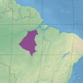 To the northwest the ecoregion adjoins the Madeira–Tapajós moist forests on the other side of the Tapajós River. To the north it adjoins the Gurupa várzea along the Amazon River. The Uatuma–Trombetas moist forests are on the opposite bank of the Amazon. To the east are the Xingu–Tocantins–Araguaia moist forests. To the south and southwest the ecoregion blends into the Mato Grosso seasonal forests ecoregion.[3]