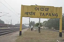 Tapang railway station is a railway station on Khurda Road–Visakhapatnam section, part of the Howrah–Chennai main line under Khurda Road railway division of East Coast Railway zone.[1] It is situated at Narangarh, Tapang in Khordha district in the Indian state of Odisha.[2]