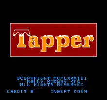 Tapper, also known as Root Beer Tapper, is a 1983 arcade game developed by Marvin Glass and Associates and released by Bally Midway.[4][5] Tapper puts the player in the shoes of a bartender who must serve eager, thirsty patrons (before their patience expires[6]) while collecting empty mugs and tips. It was distributed in Japan by Sega in 1984.