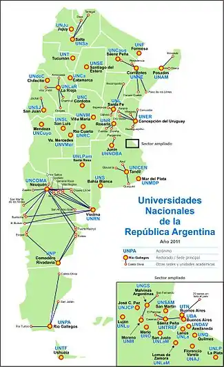 - INDEC: Alumnos según instituciones universitarias de gestión estatal Archived 2011-04-08 at the Wayback Machine