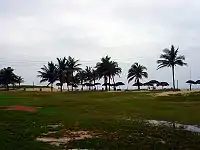 This resort community was built in the 1940s in Art Deco style on a hill facing the Atlantic Ocean. A small marina is located in an inlet west of the town. An amusement park was located across from this inlet, but now (2006) lies in ruins. While there's hardly any evidence of its past existence on the ground, the aerial view reveals a pentagram shape. The circle that surrounds the pentagram measures exactly 666 feet in diameter.[1] The Pentagram does not belong to Playa Tarara, but to Playa Celimar. It was built after 1959 as an amusement park for "Pioneros of Cuba" organization.
