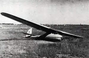 In the mid-1930s there was international interest in short span but high performance sailplanes,[1] because their ability to turn tightly would enable them to remain within narrow thermals. The German Darmstadt D-28 Windspiel, built in 1933, was an early example.[2] The structure of the later, experimental Promyk (Small Radius) was almost twice as heavy as that of the delicate Windspiel, though the span was slightly less. Otherwise known as the TS-1/34, its design was started in 1934 but construction in the ZASPL workshops in Lwów was delayed by a financial crisis in Poland between 1935 and 1936 which led to a government clampdown on prototype building. The delay gave Stępniewki the opportunity to make the Promyk the first Polish sailplane with flaps. It finally flew in the spring of 1937.[1]