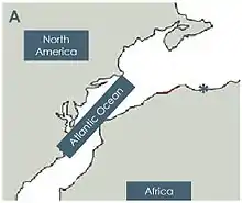 The initial rifting of Pangea began 260 million years before present during the Late Permian and persisted through the Triassic. Throughout this stage of rifting, the continental crust was thinned and separation of North America from northwestern Africa began.[2][3] Normal faulting in a northeast-southwest direction created a series of grabens and half-grabens developed as the thinned crust subsided. Subsidence led to the formation of a shallow basin without forming an ocean.[4]
