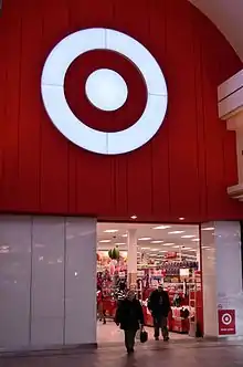 ![]() The mall entrance to the Target store at Shoppers World Brampton in Brampton, Ontario (store #3668), during its grand opening in 2013. Closed in 2015, and later expanded and became a Jysk, Staples, GoodLife Fitness, and a Giant Tiger in 2017 or 2018. | |