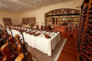 Tarisio's New York offices and gallery are at 244–250 W 54th Street, in the former workshop of the prominent French violin dealer and restorer Jacques Français.[1] Français was joined in 1964 by the luthier René A. Morel, also a Frenchman, who later opened his own shop in the same space.[2] Morel continued to work in collaboration with Tarisio until the summer of 2011, offering soundpost adjustments and other expert services. After Morel's retirement, he was succeeded at Tarisio by his colleague the luthier Stefan Valcuha, who restores lutes as well as taking care of their general maintenance.