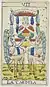 This deck pattern was derived from the Tarot of Marseilles but was made reversible for modern game playing.[5][6] It consists of 78 cards: a trump suit of 22 cards, numbered from 0 to 21, and four 14-card suits of swords (spade), batons (bastoni), cups (coppe), and coins (denari). Each suit has a king (re), queen (donna), knight (cavallo) and jack (unlabelled), pip cards numbered from 2 to 10, and an unnumbered card with an elaborate suit symbol which acts as the ace. Trumps and most pip cards have indices in modern Arabic numerals (for trumps, cups, and coins) or Roman numerals (for swords and batons). Unusually, in most games trump 20 outranks trump 21 (this may have been influenced by Bolognese games).