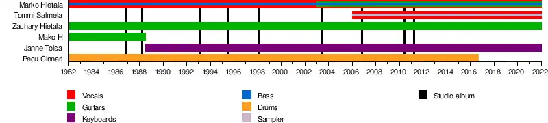 - Marko Hietala – lead vocals, bass, acoustic guitar (1982–present)
