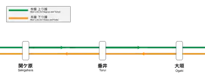 | Ōgaki | Semi Rapid (westbound only) | Sekigahara | ||