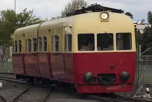 In 1949/50 the TGR took delivery of six 153hp articulated DP class railcars built by Commonwealth Engineering in Clyde, New South Wales.[2] With seating for 58 passengers, they were initially rostered on the Hobart - Launceston Evening Service. In September 1950, they were used on a new limited-stops morning service between the two cities, working in pairs (DP + DP). Three railcars (DP27, DP28, DP29) were upgraded with carpeting, curtains and hot meal facilities.