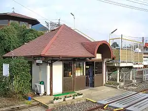 The rear of the Minami Aso station building. The track in the foreground is JR's.