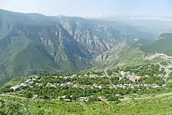 Tatev (Armenian: Տաթև) is a village and the center of the Tatev Municipality of the Syunik Province in Armenia. The village is home to the 9th-century Tatev Monastery, and hosts a station of the Wings of Tatev; the world's longest non-stop double track aerial tramway.