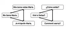 Selected content from Tatoeba in Esperanto is available in the multilingual DVD Esperanto Elektronike published by E@I.[34] As of November 2022, Esperanto is Tatoeba's fifth pivot language, with over 330,000 sentences translated into at least two languages.[13] Other constructed languages like Toki Pona, Interlingua, Klingon, Lojban, and Ido also have a significant footprint.[12]