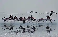 A group of flamingos flocking to Lake Tuz