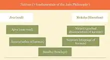 Jain philosophy explains that seven tattva (truths or fundamental principles) constitute reality.[1] These are:[2]—