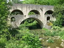 The double bridge with its two rows of arches, one on top of the other, was probably built around 1330. It lies at the foot of the southwestern valley side below Rothenburg ob der Tauber and was part of a trade route from Augsburg to Würzburg. In terms of building activity, it is known that it was renovated in 1791, after the four upper arches had collapsed the year before. In 1925, the eastern approach to the bridge was widened and, twenty years later. In 1945, the structure was blown up by German troops. Rebuilding commenced in 1955, and took a good year. The rebuilt bridge was opened on 10 November 1956.