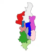 Taunggyi District (Burmese: တောင်ကြီးခရိုင်) is a district of Shan State in Burma. The principal town and administrative center is Taunggyi. This district has 12 towns and 3001 villages.