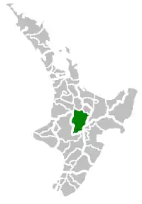 Taupō District Council is a territorial authority that administers the Taupō District in the Central North Island of New Zealand.[1] The district stretches from the small town of Mangakino in the northwest to the Tongariro National Park in the south, and east into the Kaingaroa Forest, covering 6,970 km2 (including Lake Taupō). It had a population of as of June 2022.[2]