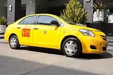 Taxicabs of the Philippines are one of the modes of transportation in the country. They are regulated by the Department of Transportation (DOTr), the Land Transportation Office (LTO), and the Land Transportation Franchising and Regulatory Board (LTFRB). The taxicabs there vary from models and uses. Most taxicabs have yellow colored license plates, taxi signs, LTFRB Registration number, and taximeter, which is mandatory in every cab.