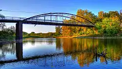The Taylor's Ford Bridge is a historic structure located four miles southeast of Independence, Iowa, United States. It spans the Wapsipinicon River for 271 feet (83 m).[2] In January 1872 the Buchanan County Board of Supervisors contracted with the Wrought Iron Bridge Co. from Canton, Ohio, to build a two-span bridge in the city of Independence for $20,102.[2] It had replaced an earlier span that had been washed away in a flood. Both spans were replaced by a heavier span in 1891. One of the spans was moved to Buffalo Township, and has subsequently been removed. This bridge is the other span. It has been replaced a second time by a heavier bridge, but it remains in place even though it no longer carries vehicle traffic. The bridge was listed on the National Register of Historic Places in 1998.[1]