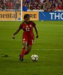 Playing in a friendly for the national team in 2017
