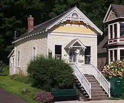 Taylors Falls Public Library is the public library of Taylors Falls, Minnesota, United States, still operating in its original 19th-century building. Originally constructed as a tailor shop in 1854, the building was remodeled and converted into a library in 1887. Taylors Falls Public Library was listed on the National Register of Historic Places in 1970 for its local significance in the themes of architecture and education.[2] It was nominated for being an intact example of small-town libraries as they existed before Carnegie libraries and bookmobiles, and for its Carpenter Gothic/Stick style architecture.[3]