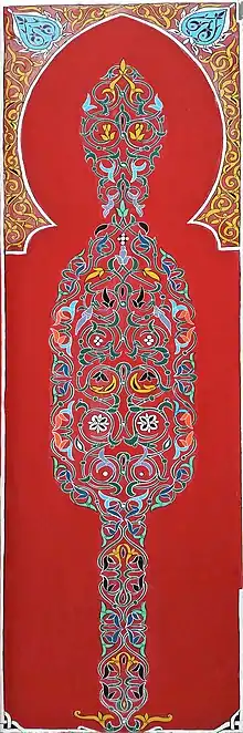 Almost all of the patterns are named after plants or flowers: - Tawrīq: (from waraqa: ورقة) leaf pattern; - Tashjīr: (from Shajara: شجرة) tree-shaped pattern; - ‘Arq: Root; - Qronfel: Carnation; - Sūsān: Basil.[1]