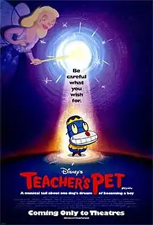 Teacher's Pet is a 2004 American animated musical comedy film, which serves as the finale of the 2000 television series of the same name created by artist Gary Baseman. Produced by Walt Disney Television Animation and distributed by Buena Vista Pictures, the film was directed by series director Timothy Björklund and written by series creators Bill and Cheri Steinkellner. The film was released theatrically on January 16, 2004, to mostly positive reviews, but flopped at the box office, making only $6.5 million on a $10 million budget.[2]