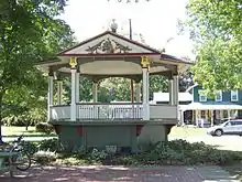 The land for the park was donated to the town in 1807. In 1910, political cartoonist Eugene Zimmerman, a resident of the town, designed the bandstand still standing today, known as the Zim Bandstand.[2] The park is adjacent to the Zimmerman House, which was Eugene's home.