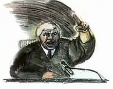In June 1999, Murphy and Tabish were arrested for Binion's murder, as well as for conspiracy, robbery, grand larceny and burglary. The prosecution contended that Murphy and Tabish had conspired to kill Binion and steal his wealth, drugging him into unconsciousness and burking him, a form of manual suffocation. The suffocation theory was presented at trial by forensics pathologist Michael Baden, who testified for the prosecution.[15] Baden postulated that Murphy and Tabish had resorted to suffocation because their effort to kill Binion by drugging him had taken too long, and that the pair feared discovery.[16] Both Murphy and Tabish were charged with murder as well as burglary for attempting to remove Binion's silver fortune from its vault in Pahrump.