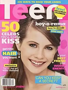 Teen was an American teen and lifestyle magazine for teenage girls. The content of Teen included advice, entertainment news, quizzes, fashion, beauty, celebrity role models, and "real-girl stories".[1] The magazine was published between 1954 and 2009.[2]