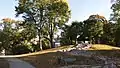 It was originally erected 1890, but was re-constructed in 1940 under the direction of landscape architect Erik Glemme. It is home to statues of two Swedish authors. On a hill in the park's eastern part stands Carl Eldh's massive statue of August Strindberg, erected in 1942. A statue of Astrid Lindgren was erected in 1996. It also lies close to Enskilda Gymnasiet, one of Sweden's most prestigious schools. The story of Astrid Lindgren's children's book Mio min Mio begins in Tegnérlunden. It is there that the boy Bo Vilhelm Olsson meets the genie that takes him to the Land of Faraway.[1] [2]