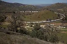The Tehachapi Loop is a 3,779-foot-long (0.72 mi; 1.15 km) spiral,[1] or helix, on the Union Pacific Railroad Mojave Subdivision through Tehachapi Pass, of the Tehachapi Mountains in Kern County, south-central California. The line connects Bakersfield and the San Joaquin Valley to Mojave in the Mojave Desert.