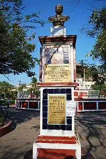 Tehuantepec is the second largest city on the Isthmus of Tehuantepec in the south of Mexico.[1] Founded by the Zapotecs in the period just before the arrival of the Spanish in the 16th century, Tehuantepec remains the center of Zapotec culture in the Isthmus.[2] One important symbol of this culture is the image of a Zapotec woman from the area called La Tehuana. In the 2000s, a sculpture of this figure was created by Miguel Hernández Urbán from the State of Mexico. The sculpture is found at the main entrance to the city of Tehuantepec, made of local marble and fine wood along with stainless steel brought from Mexico City. The work made Hernández an "adopted son" of the city.[3] The city remains home to many traditions and customs which are centuries old, with many, especially in the market, still favoring the Zapotec language over Spanish.[4] The city reached its height in the early 20th century with the arrival of the railroad. However, since then the importance of this railroad has severely diminished by the building of the Panama Canal. Today the city is considered to be poor, with many of its buildings in disrepair. Many survive on subsistence commerce.[5] Many motorcycle taxi operators in Tehuantepec and other cities in Oaxaca are underage, between 13 and 15.[6] The city also has had problems with stray dogs including an incident when about twenty dogs took over the main entrance.[7]