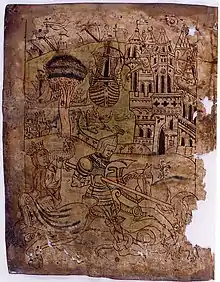 Teiknibók (Reykjavík, Stofnun Árna Magnússonar, AM 673 a III 4to) is an Icelandic manuscript of drawings used as models for manuscript illumination, painting, carving and metalwork. It is remarkable for being one of only three dozen books of its type which survive from Western Europe and the only example extant from medieval Scandinavia.[1][2] The manuscript was produced over a period of over 150 years by four anonymous artists, beginning in around 1330.[2] The illustrations in Teiknibók resemble those in Kirkjubæjarbók, and it may have served as a model for them.[3] In the words of the manuscript's most recent editor Guðbjörg Kristjánsdóttir, "The diverse subjects of the drawings prove that Icelandic art flourished to a far greater degree than surviving works of art would indicate."[1]