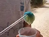 The Sifrei says that counterfeit tekhelet was made from both "[red] dye and indigo", indicating that the overall color was purple.[38] However, other sources list just "indigo" as the counterfeit,[28] suggesting either that in their opinion the color was purely blue, or that indigo was the main counterfeit ingredient and the other ingredients not significant enough to mention.
