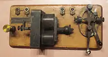 ![]() A straight key style of telegraph key – model J-38, a key used by U.S. military during World War II, and frequently re-used by radio amateurs | |