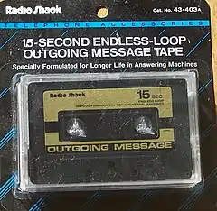 An endless-loop outgoing message tape used in dual-cassette-based answering machines
